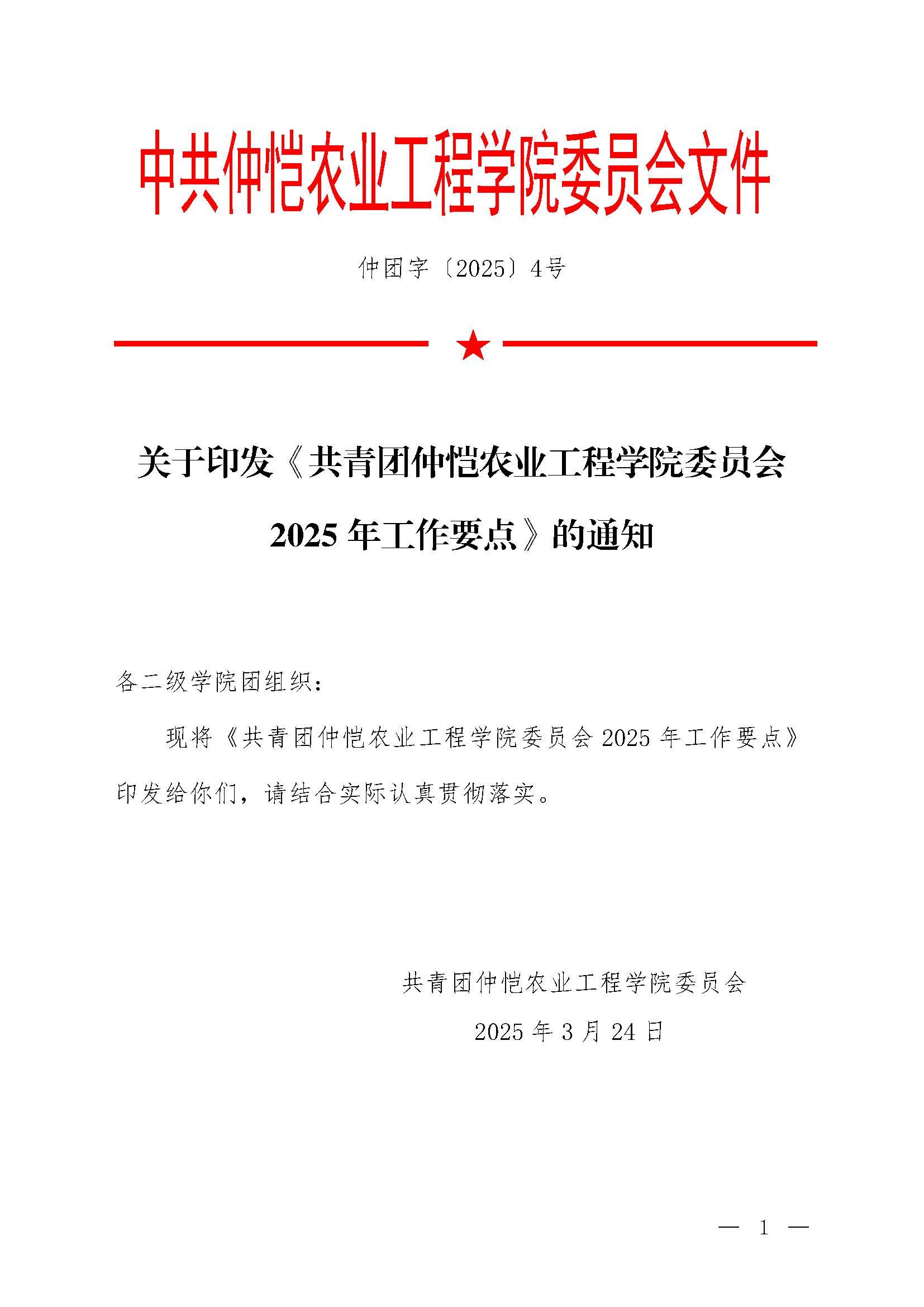 关于印发《共青团仲恺农业工程学院委员会2025年工作要点》的通知